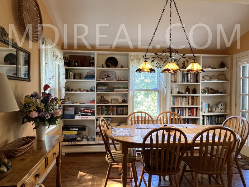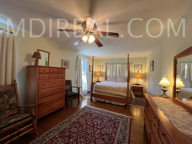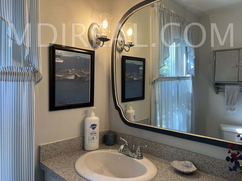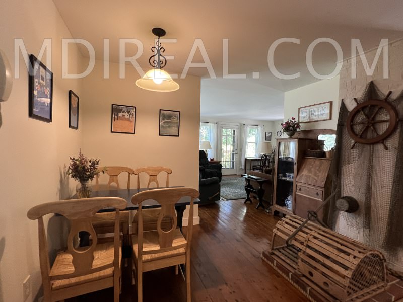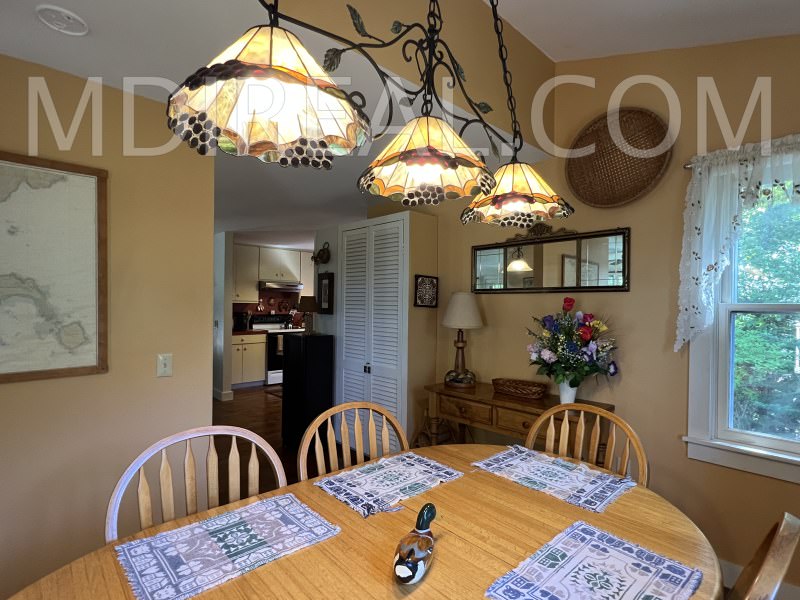 Layout: First Floor: Spacious and comfortable Living Room, Fully equipped Kitchen, Breakfast Area, Dining Room, Half Bath, Laundry. Second Floor: Large Master Bedroom with a Queen Four-Poster Bed and ceiling fan, second Bedroom with a Queen Bed, third Bedroom with 2 Twin Beds, and a Shared Full Bath. Outdoor Path to Shore & Furnished Deck with Water Views.